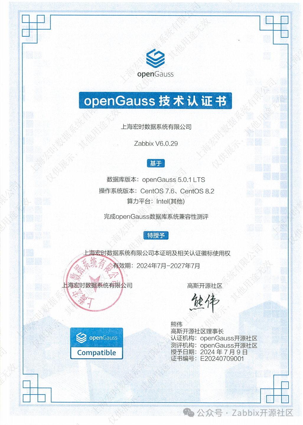 Zabbix+openGauss深度融合 Zabbix与openGauss的兼容性认证完成,不仅丰富了双方的的生态系统,也为Zabbix用户提供了更多的选择,用户可以结合Zabbix的灵活性、可扩展性与openGauss的开源特性,自由地修改和优化数据库,以适应企业特定的业务需求,从而定制开发更加个性化的监控解决方案。此外,双方在未来将持续深化合作,共同推动企业数字化转型,为企业信息化建设与发展创造更大的价值。 如果想要获取兼容认证服务,请联系Zabbix官方:400-823-0118