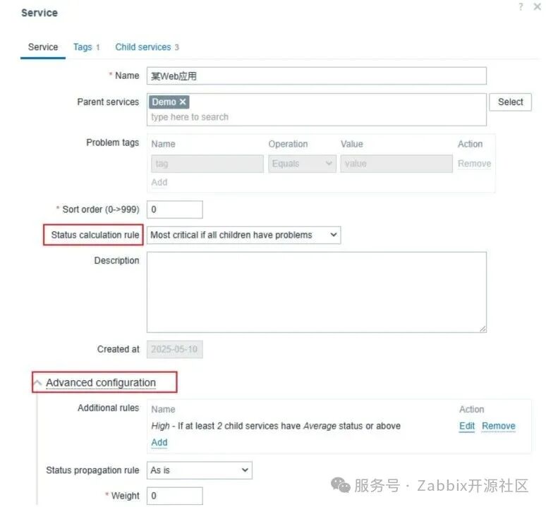 这里有一个Service tags,就是在第三步提醒您留意的,在parent service中的tag页面里自定义的一个tag。两者需要名字和值都完全相同。
