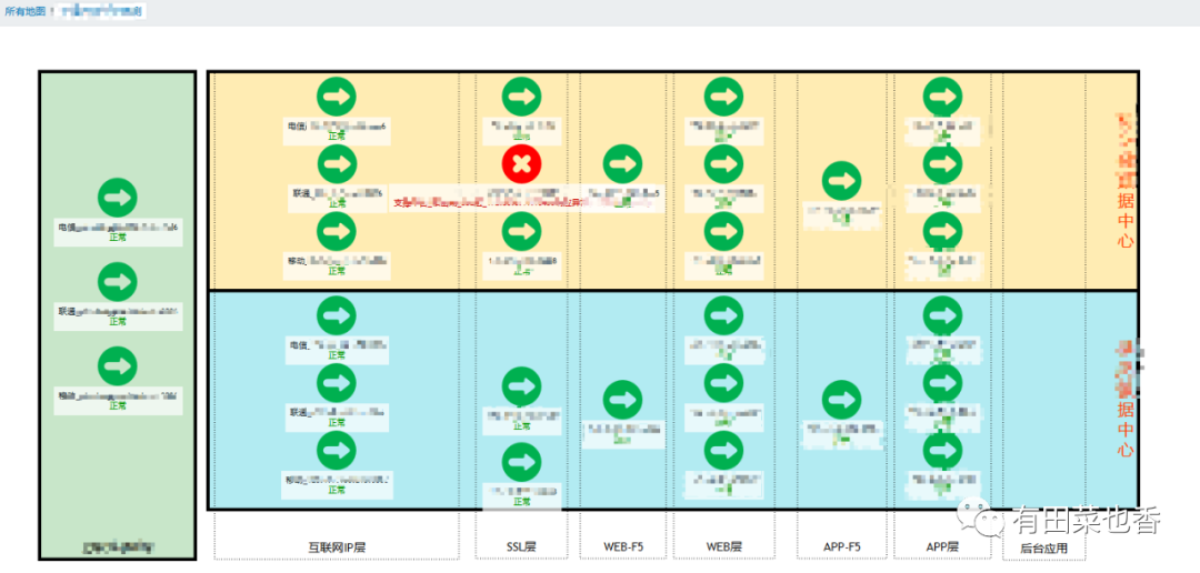 像上面提到的页面监控,其实也是一个内外网的流向拓扑,可以将各个层面的页面分别前后对接,那么就可以提供非常优秀的问题定位能力。
