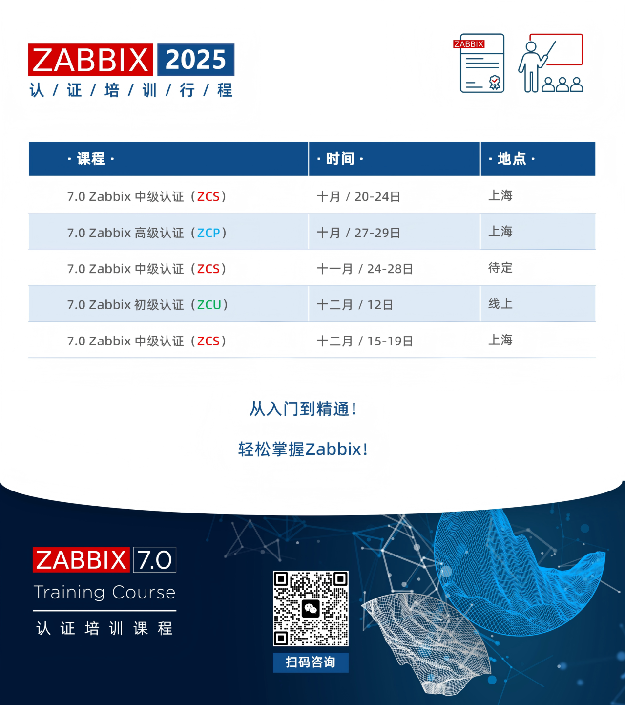作为Zabbix中国社区的运营者,我们计划在2026年Q1邀请Zabbix原厂培训师从拉脱维亚亲赴中国为中国用户进行ZCE培训,意向报名者填写下表,前20%报名者享受优惠。