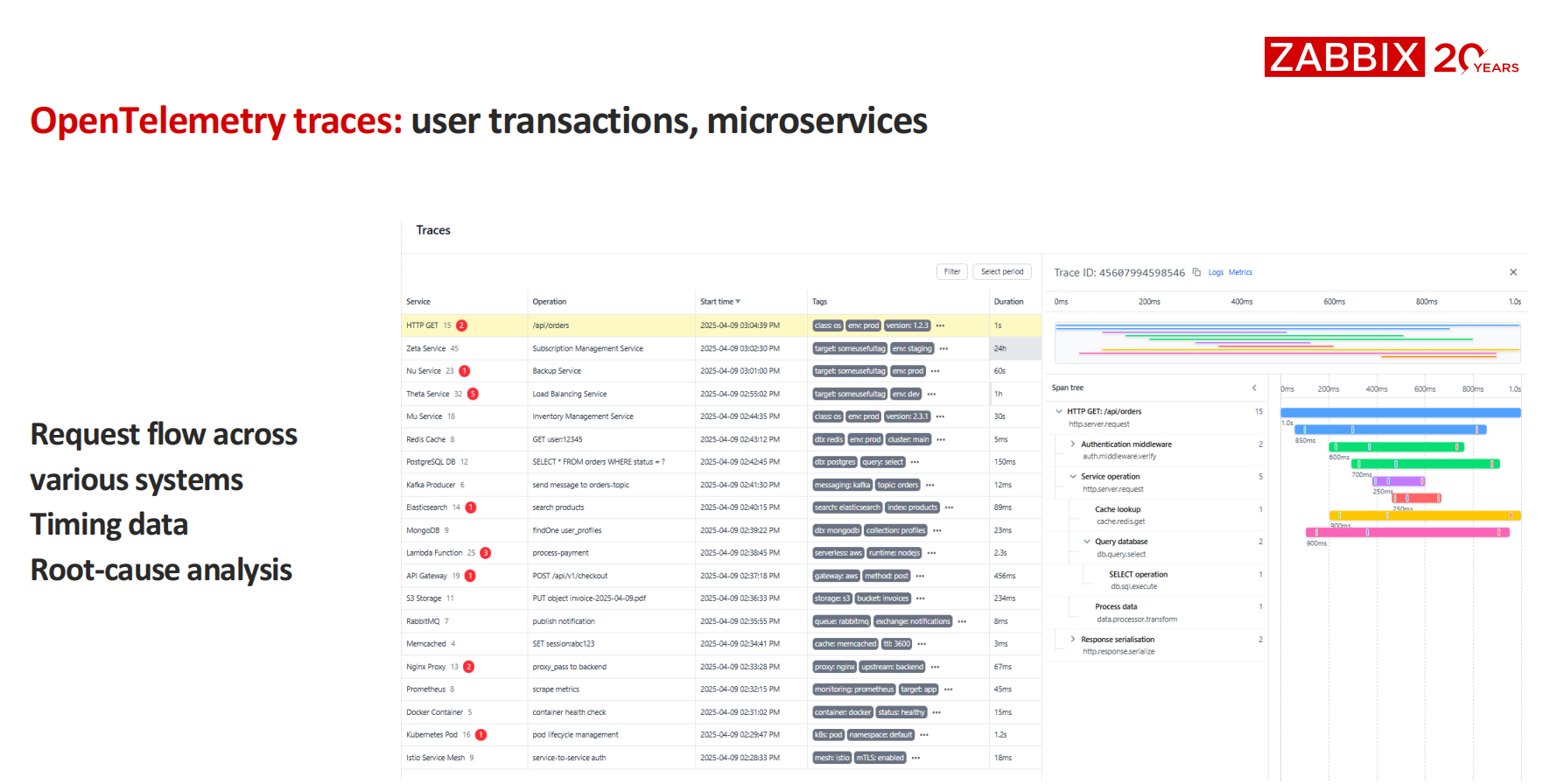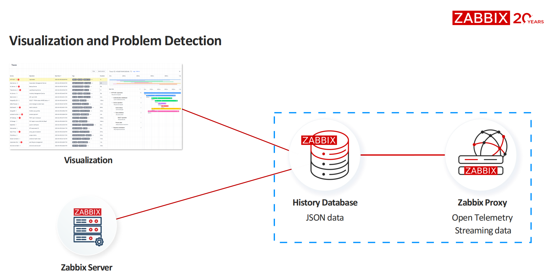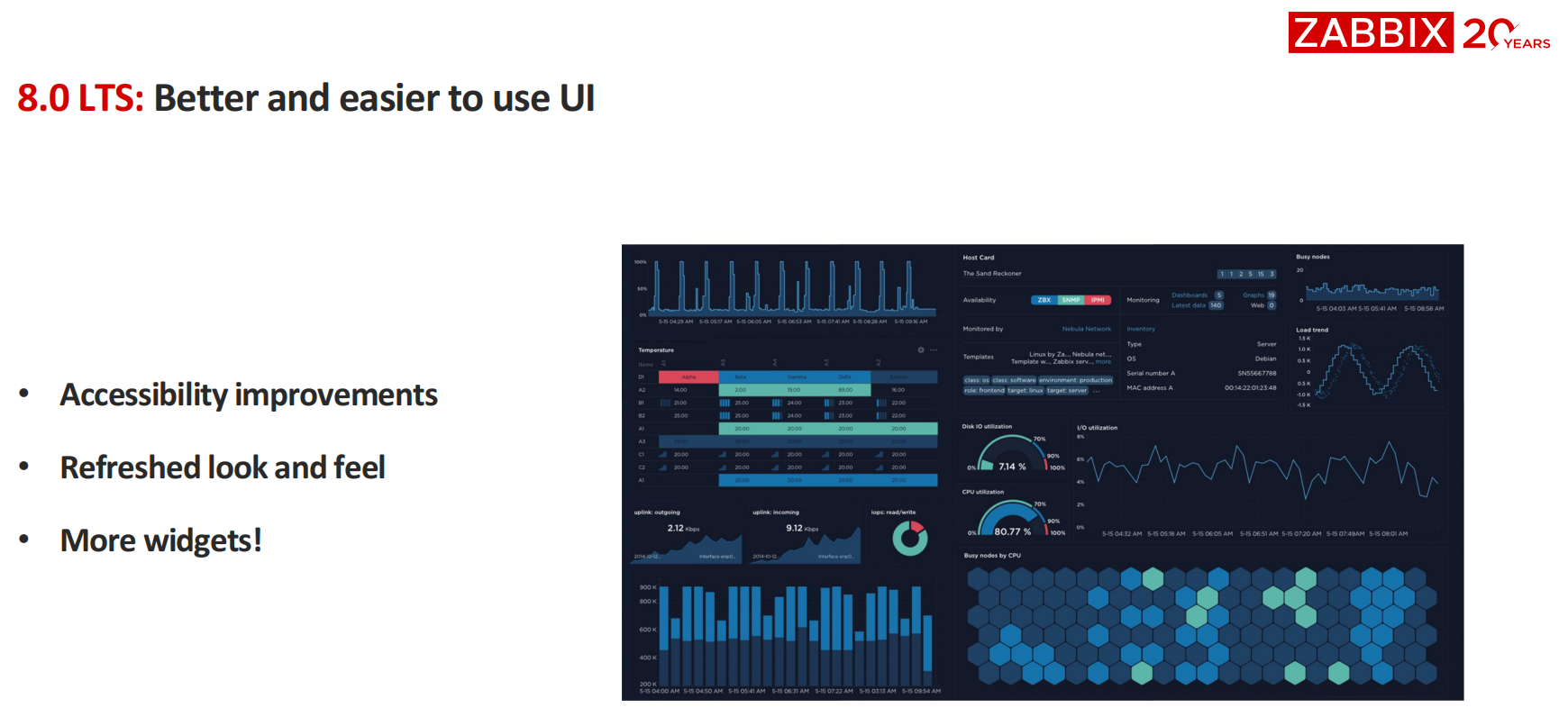 Zabbix + AI:将进一步增强智能事件处理能力,提升运维自动化水平; 数据库升级:计划引入ClickHouse作为新一代数据引擎,以支持大规模流式数据的高效存储与查询; 可观测支持:原生集成OpenTelemetry,实现应用性能监控与分布式链路追踪,助力快速定位系统瓶颈与故障根源; 用户体验优化:全新的用户界面与Zabbix移动应用也正在开发中,未来将为用户提供更灵活、便捷的监控访问方式。